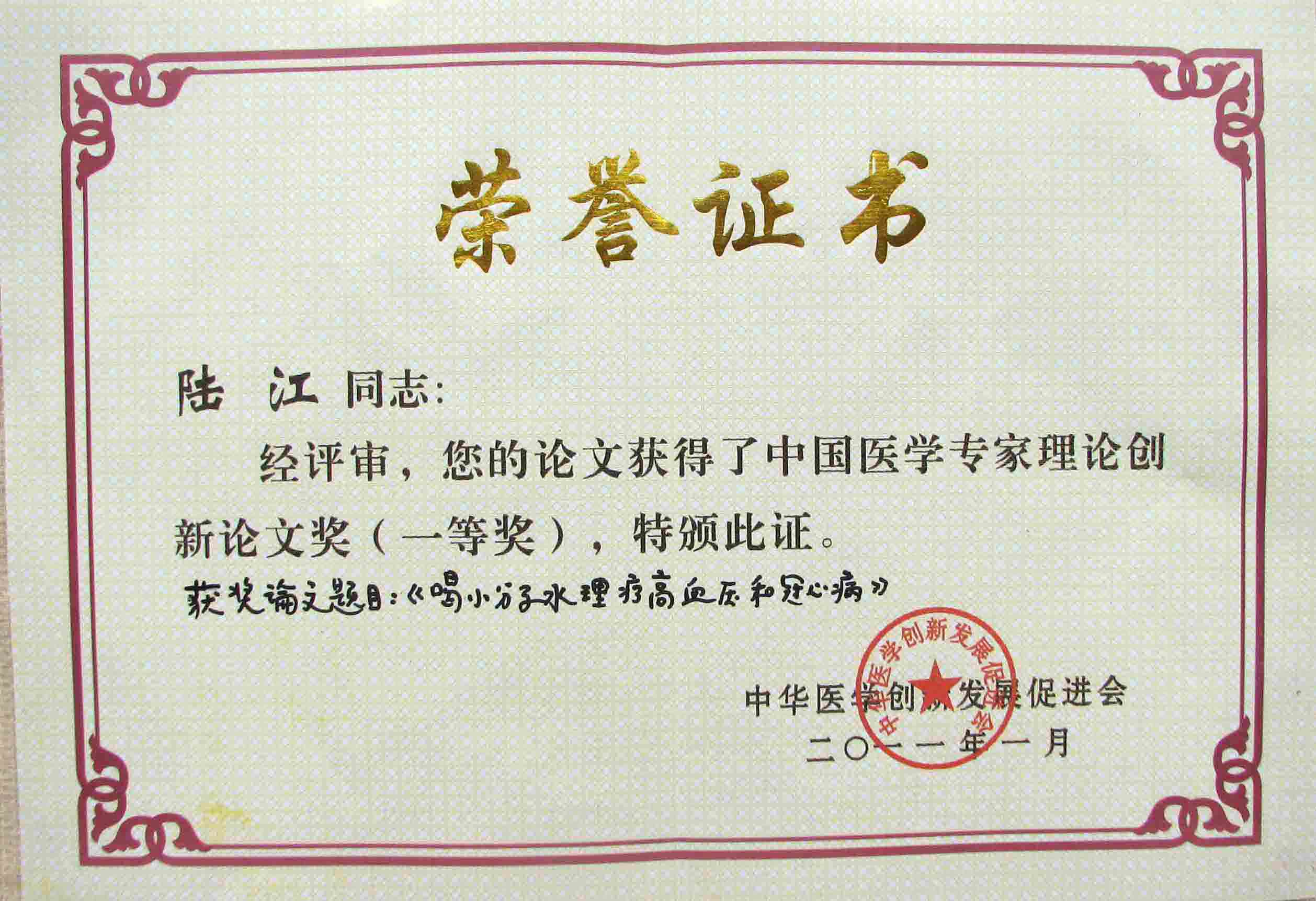 《飲用小分子水治療高血脂》獲優(yōu)秀論文獎