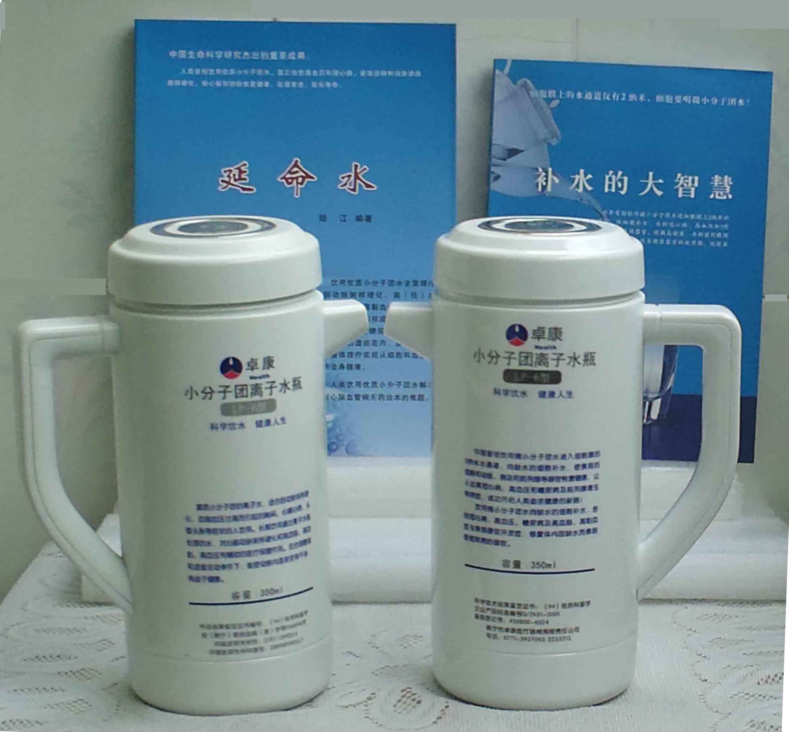 本品大量用戶的使用效果表明,能治愈冠心病、腦動脈硬化、原發(fā)性高(低)血壓、高血脂、高粘血癥、高血尿酸癥(痛風)和2型糖尿病、衰弱器官并發(fā)癥(前列腺增生、腎衰與尿毒癥)及中風后遺癥等療效好。產(chǎn)品配信譽卡。使用壽命30年,不換芯,易清洗。團購優(yōu)惠。從郵局匯款,匯費1%,地址按本頁下方地址、聯(lián)系人寫。從銀行匯款,請點擊[聯(lián)系匯款]欄,從工商銀行匯款,建設銀行、農(nóng)業(yè)銀行匯款,均免收匯費,匯款后20--30分鐘內(nèi)發(fā)短信,可用微信轉(zhuǎn)帳,均免匯費,微信號即手機號13768308380。匯款后,告知你的姓名和地址,我公司聯(lián)系人手機號是:13768308380卓康牌離子水瓶為我公司獨家生產(chǎn),郵購產(chǎn)品配《補水的大智慧》彩印書一本,另配四季出版社出版的新書《補水的大智慧》一本,并配光盤一張(含央視主持人釆訪陸江的對話視頻)。目前市場和"淘寶網(wǎng)"上有人兜售假冒的偽品,望讀者審察辯別真?zhèn)危旒僬哓飧`假冒本公司的各種證、獲獎獎項、專利號和外包裝盒上的中英文字,包括科技成果的鑒定意見等,請讀者注意防偽。如何識別假貨?已經(jīng)買了假貨怎么辦?(請點擊[打假掠影][打假掠影])。