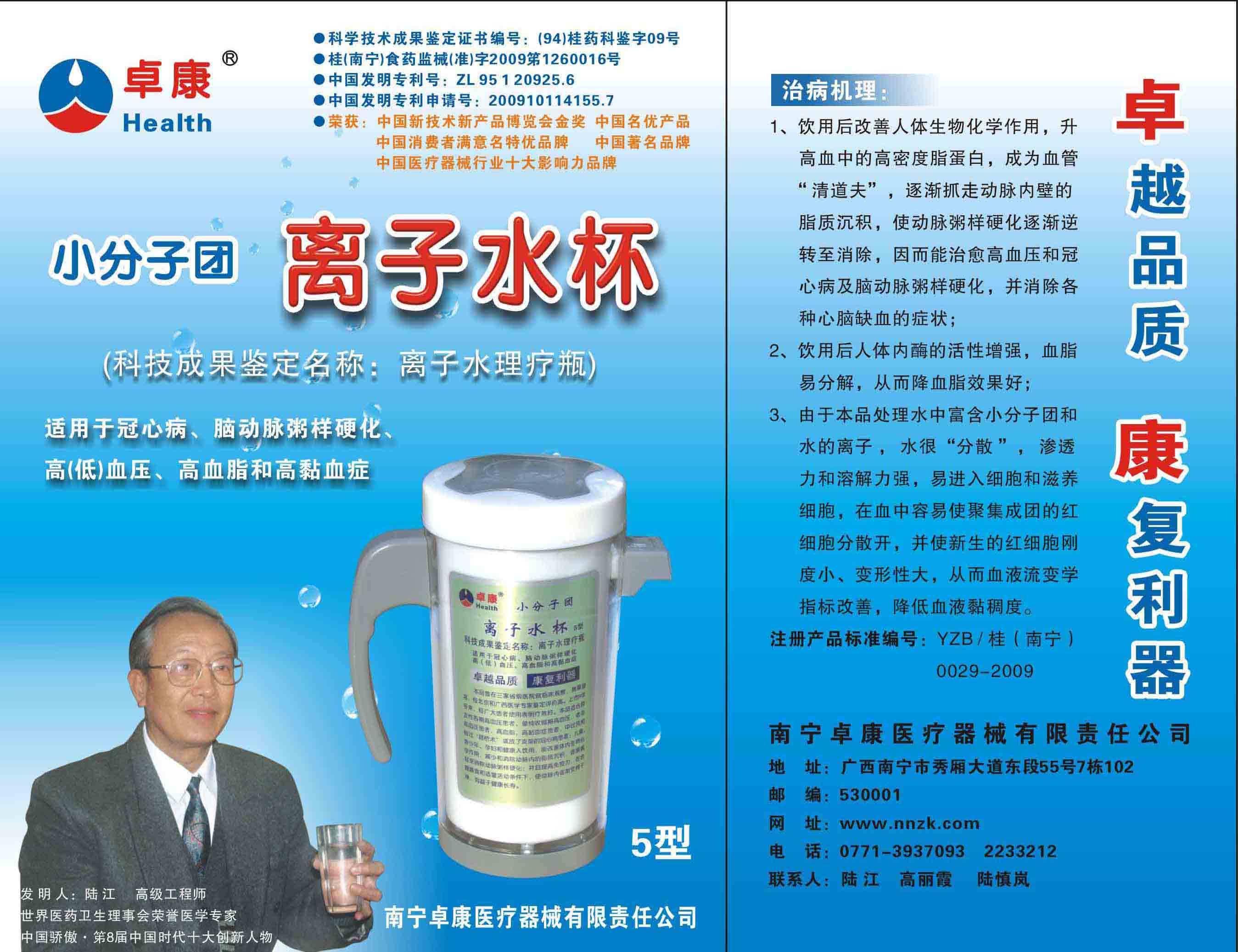 - -----南寧卓康微小水科技有限公司原為南寧卓康醫(yī)療器械有限責任公司 ,用戶普遍反饋高血壓患者飲用2—5個月,癥狀消除,不再服藥,治愈了高血壓; 冠心病患者,包括已做和未做支架或搭撟手術(shù)者,經(jīng)3—5個月飲用,消除心痛、胸悶、早搏、房顫和心絞痛等癥狀,逆轉(zhuǎn)至消除動脈粥樣硬化和斑塊,一年左右治愈冠心病,心腦電圖正常,經(jīng)冠脈造影掃描無明顯狹窄,表明冠心病痊愈;糖尿病人飲用3-10個月,血糖尿糖正常,治愈2型糖尿病; 并且使前列腺增生、低血壓、腦萎慢性咽喉炎、慢性氣管炎、支氣管炎、哮喘、矽肺病、甲亢、慢性胃腸炎、膽囊炎、慢性腎炎、腎衰、風濕性關(guān)節(jié)炎、痔瘡和濕疹皮炎及中風癱瘓或偏癱失語后遺癥等不藥而愈,且多病同治,無需終生服藥,彌補了幾千年來藥物的欠缺,使“微小水”成為人類消除高血壓、冠心病和糖尿病的寶貴資源。腦動脈粥樣硬化、低血壓和前列腺增生患者,一般飲用四個月痊愈;中風后遺癥患者,一般飲用8個月痊愈。請詳閱《用戶反饋》欄目中大量患者的反饋信、檢測報告,有的還附照片。產(chǎn)品屢獲大獎,論文也屢獲一等獎。廣大用戶好評不斷,有口皆碑。